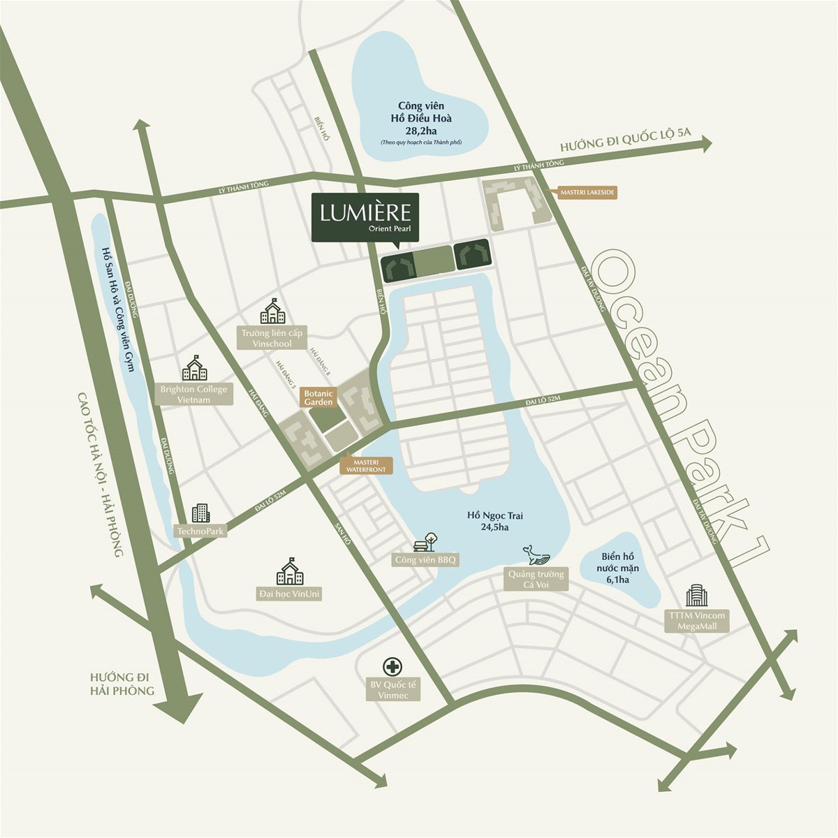 Tọa lạc giữa trung tâm khu đô thị Vinhomes Ocean Park 1, Lumière Orient Pearl là khu căn hộ duy nhất mang chuẩn mực “Lumière Series” – dòng sản phẩm cao cấp bậc nhất được Masterise Homes phát triển tại các vị trí đắt giá như Lumière Riverside (Thảo Điền), Lumière Boulevard (Thủ Đức) hay Lumière Evergreen (Nam Sài Gòn).