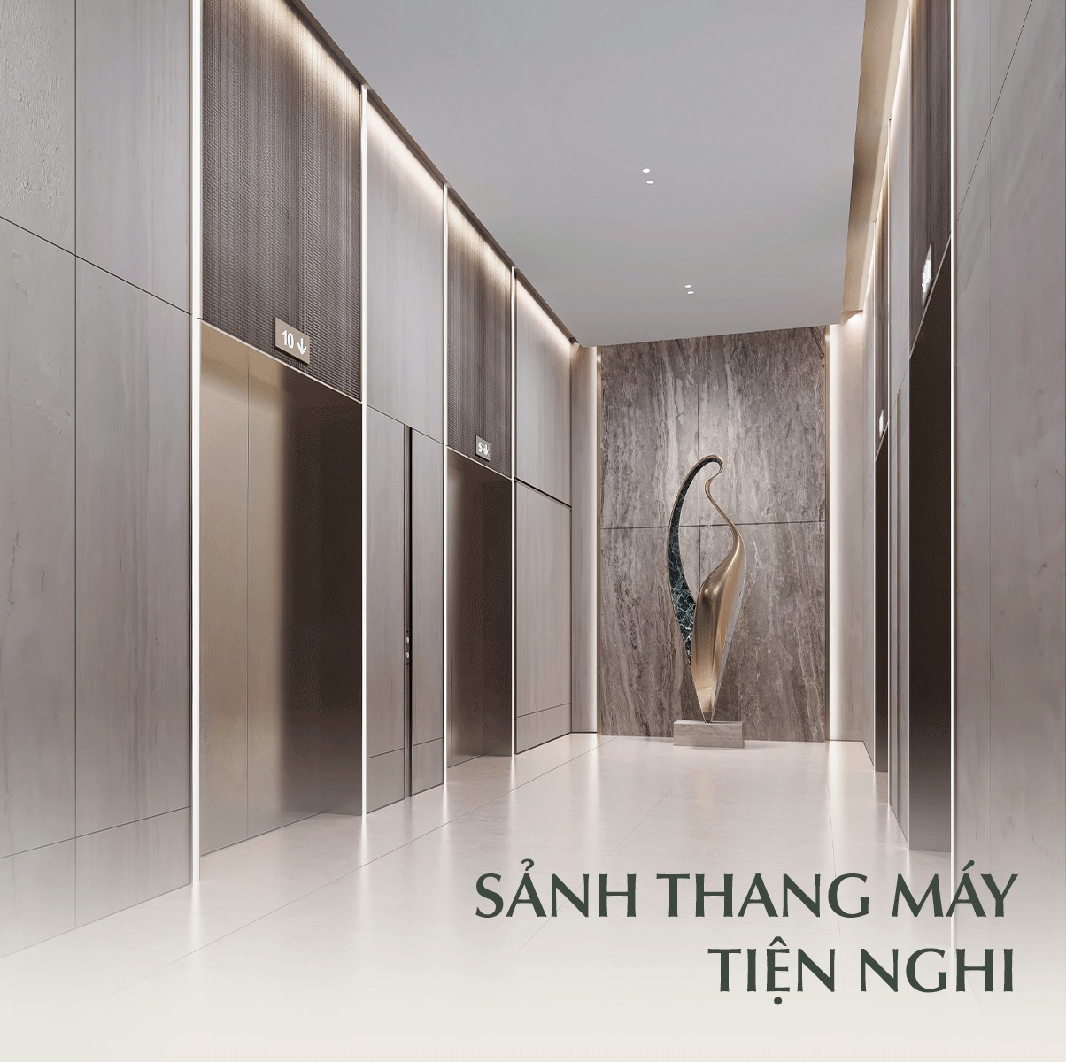 Không gian sảnh thang máy được chăm chút tỉ mỉ như một tác phẩm nghệ thuật. Từ trần cao thoáng đãng, ánh sáng dịu nhẹ đến các điểm nhấn nghệ thuật tinh tế, tất cả tạo nên trải nghiệm đáng giá, biến cả những khoảnh khắc chờ đợi thường nhật trở thành phút giây thư thái.