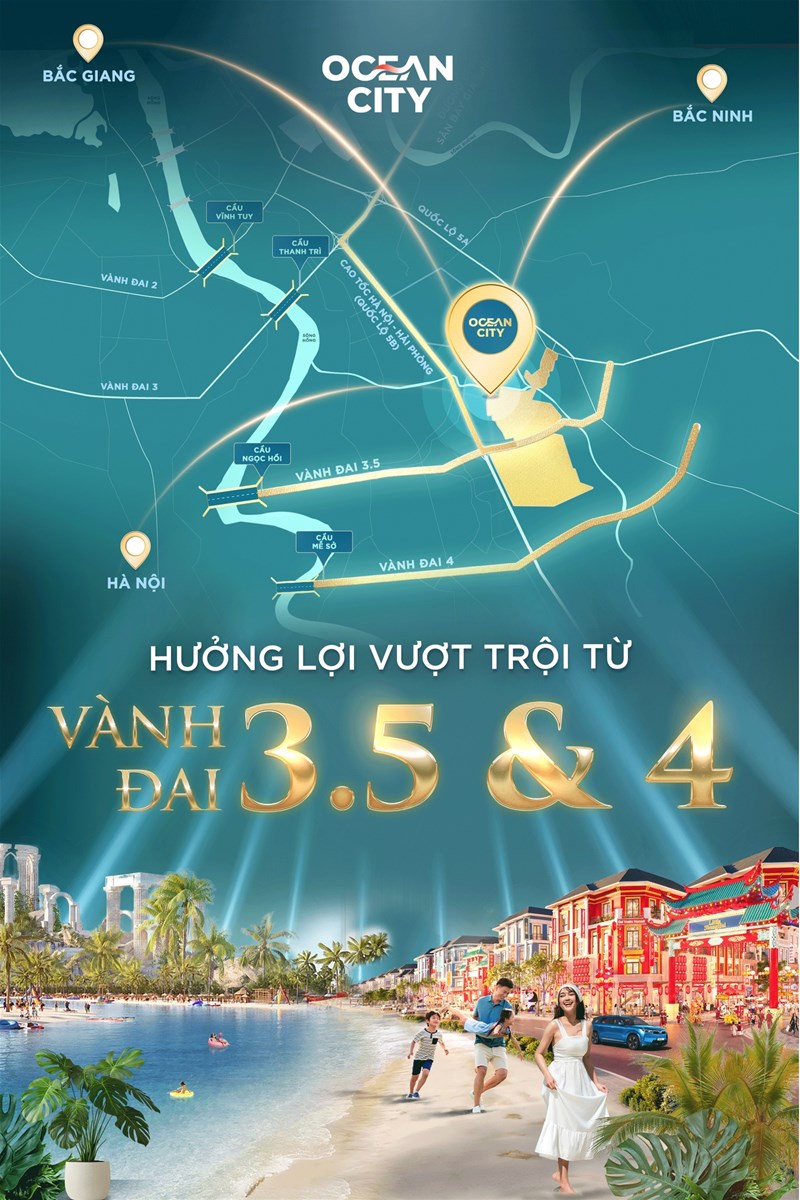 Nằm tại vị trí đắc địa ngay giao điểm giữa Vành đai 3.5, Vành đai 4 và hệ thống cao tốc trọng yếu, Ocean City thừa hưởng lợi thế hạ tầng vượt trội, trở thành trung tâm liên kết vùng chiến lược giữa Hà Nội và các tỉnh phía Bắc.